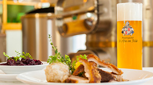 Unternehmen Sie eine Expedition ins Bierreich und verkosten unsere eigenen Biere - naturtrüb hell und dunkel! Mit ein bisschen Glück können Sie sogar zusehen, wie Ihr Bier hier frisch gebraut wird, denn der Braukessel steht direkt in der Gaststube. Gerne können Sie unsere Biere in der Flasche zu 0,5 Liter oder 2 Liter erwerben.